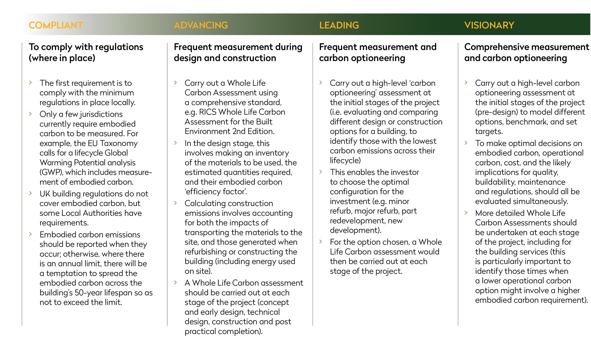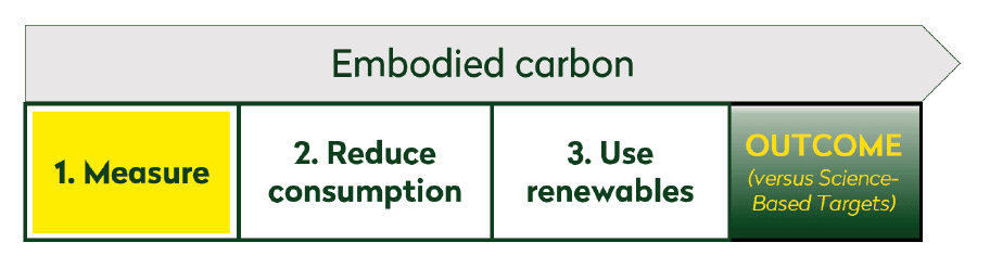As with all impact management efforts, it is critical to start with measurement to understand the baseline emissions for embodied carbon and set targets for reduction.
