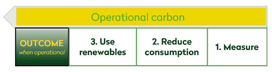 Reducing a building’s operational carbon emissions means improving its energy efficiency, and then using on-site renewables to meet its remaining energy requirement