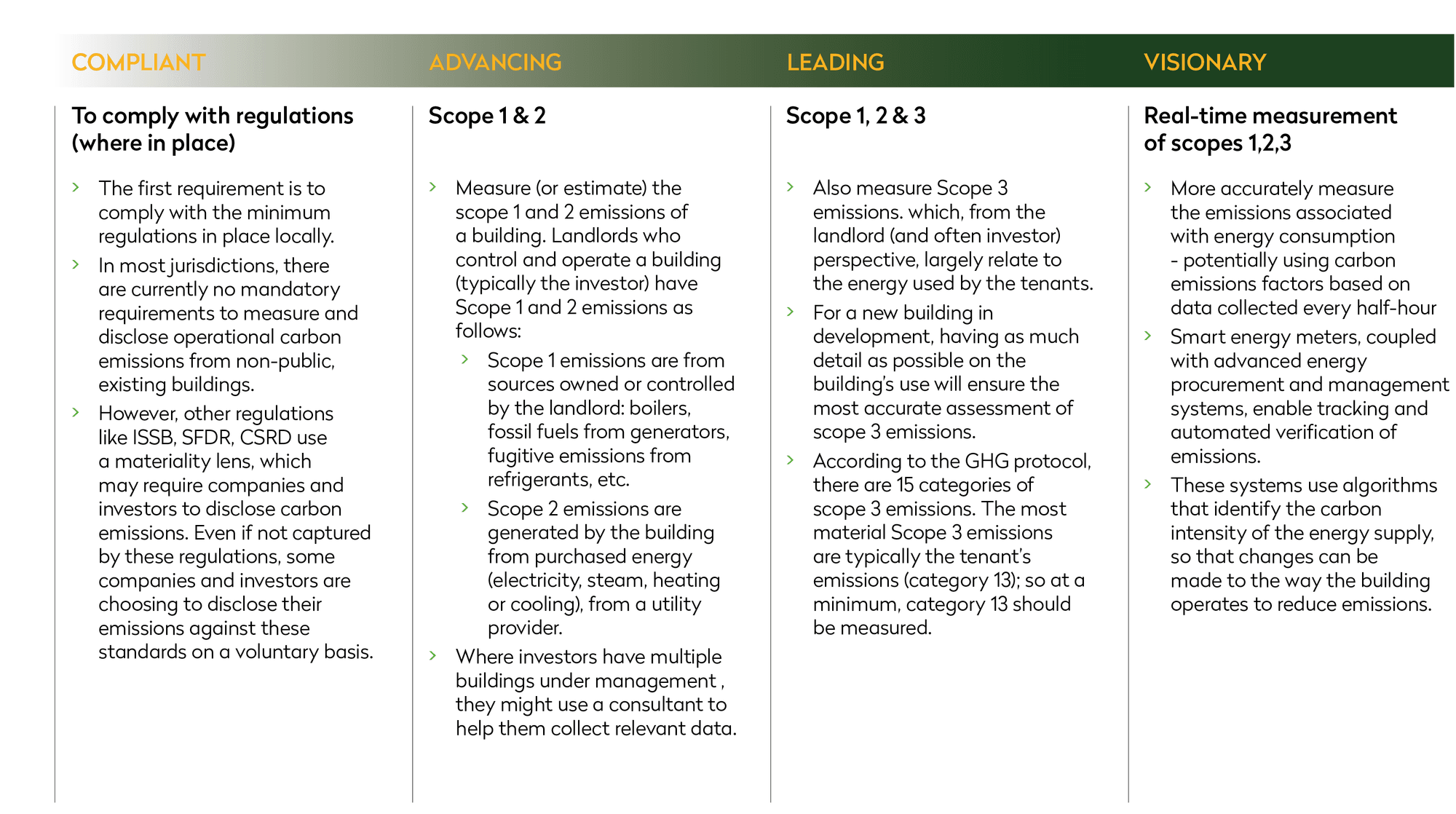 For landlords (which will often mean investors) to understand carbon emissions, the GHG Protocol requires that they collect energy data relating to all Scope 1 and 2 emissions, and the most material Scope 3 emissions for the whole building (see Appendix B; note that these Scopes are defined differently for tenants).